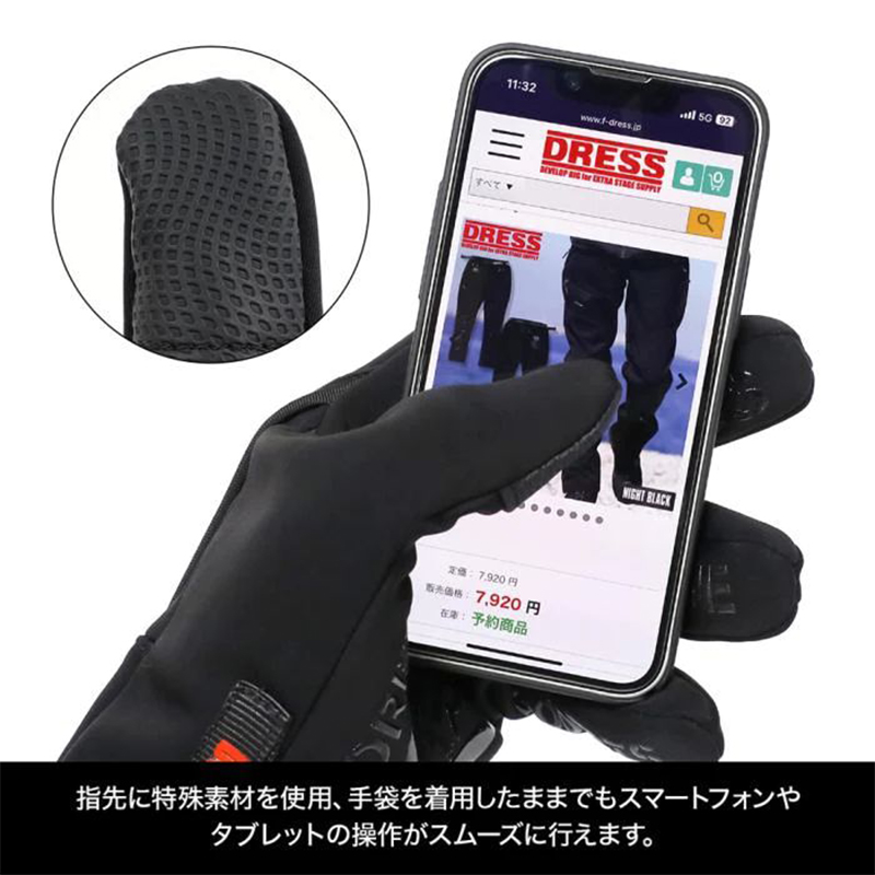 The glove fingertips are made from special conductive material, allowing smooth operation of smartphones and tablets while wearing the gloves.
