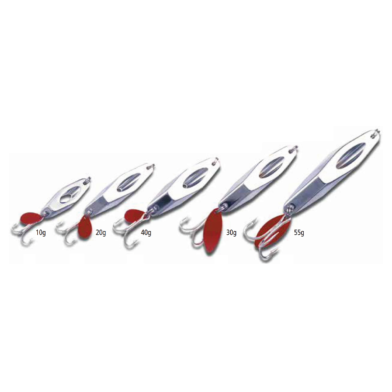 The hole in the Halco Streaker is engineered to create an exciting bubble trail, and is proven to be an exceptional fish attractant when seen from below the surface. The eight reflective sides create an attractive flash. The Halco Streaker metal lure also features a blood red teaser attached to the fish ring. This lure offers a unique combination of bubble and flash.