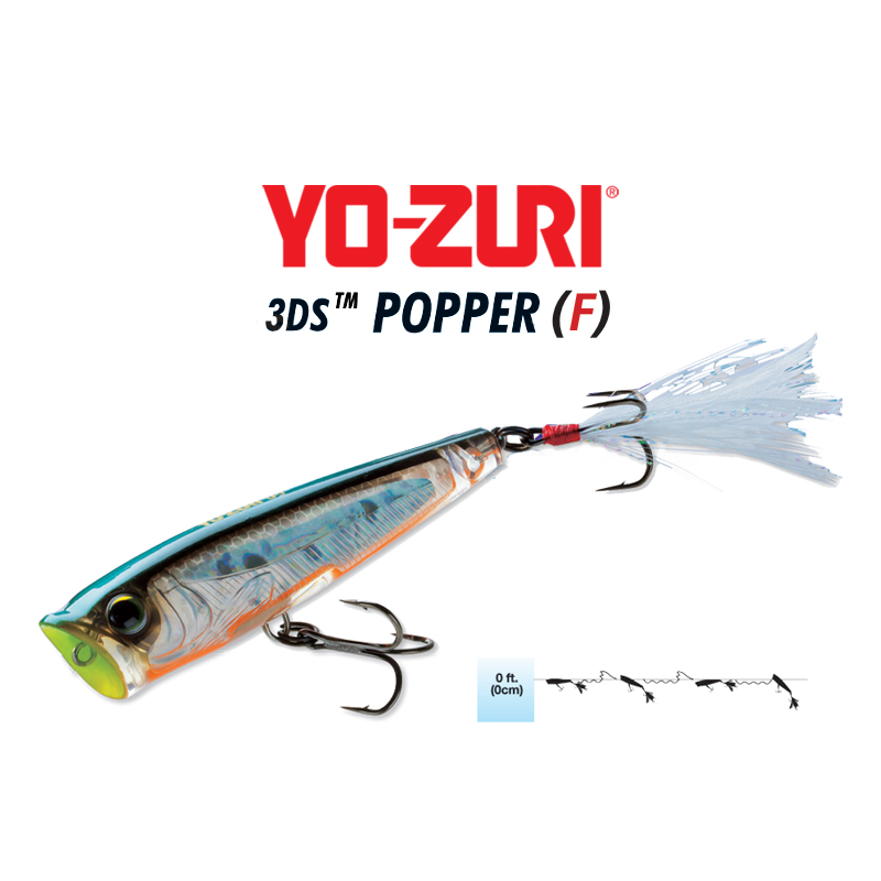 Constructed from ultra-durable ABS resin and equipped with two strong black nickel treble hooks plus the feathered rear hook, the 3DS Popper is built to withstand aggressive strikes from saltwater and freshwater predators.